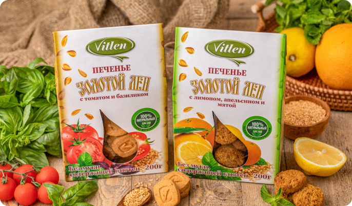 Основным направлением предприятия является производство продукции здорового питания под ТМ «Vitlen» и «ЗОЛОТОЙ ЛЕН» на сахарозаменителях, без муки, содержащей глютен. Наши технологи смогли сбалансировать вкус и пользу разных видов муки (гречневой, льняной, кукурузной, рисовой, тыквенной и т. д.) в уникальный состав, который оценят не только приверженцы правильного и полезного питания, но их близкие.